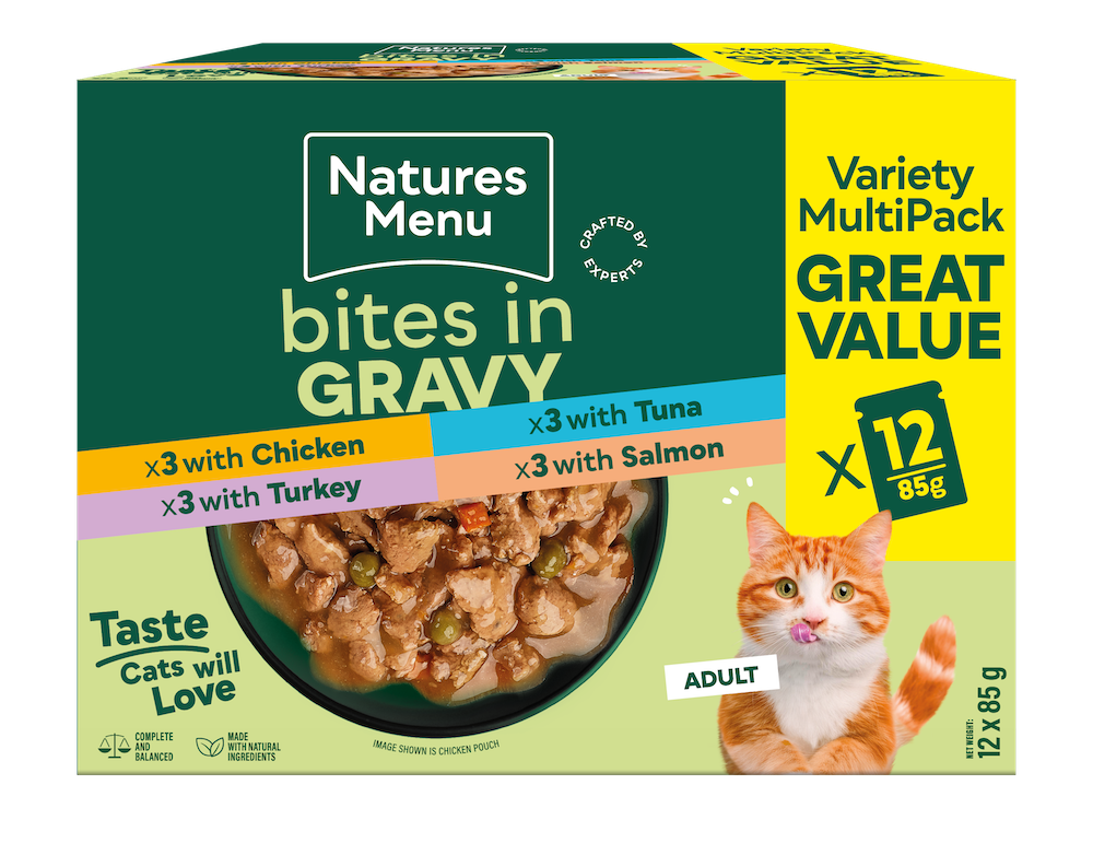 Especially for Cats, soft meaty bites in a tasty gravy. Made only from natural, healthy ingredients, lightly steamed in their own juices to lock in flavour and goodness. No artificial flavours, colours or preservatives - just tasty wholesome goodness in every bite. Each pack contains: 3 x with Chicken 3 x with Turkey 3 x with Salmon 3 x with Tuna